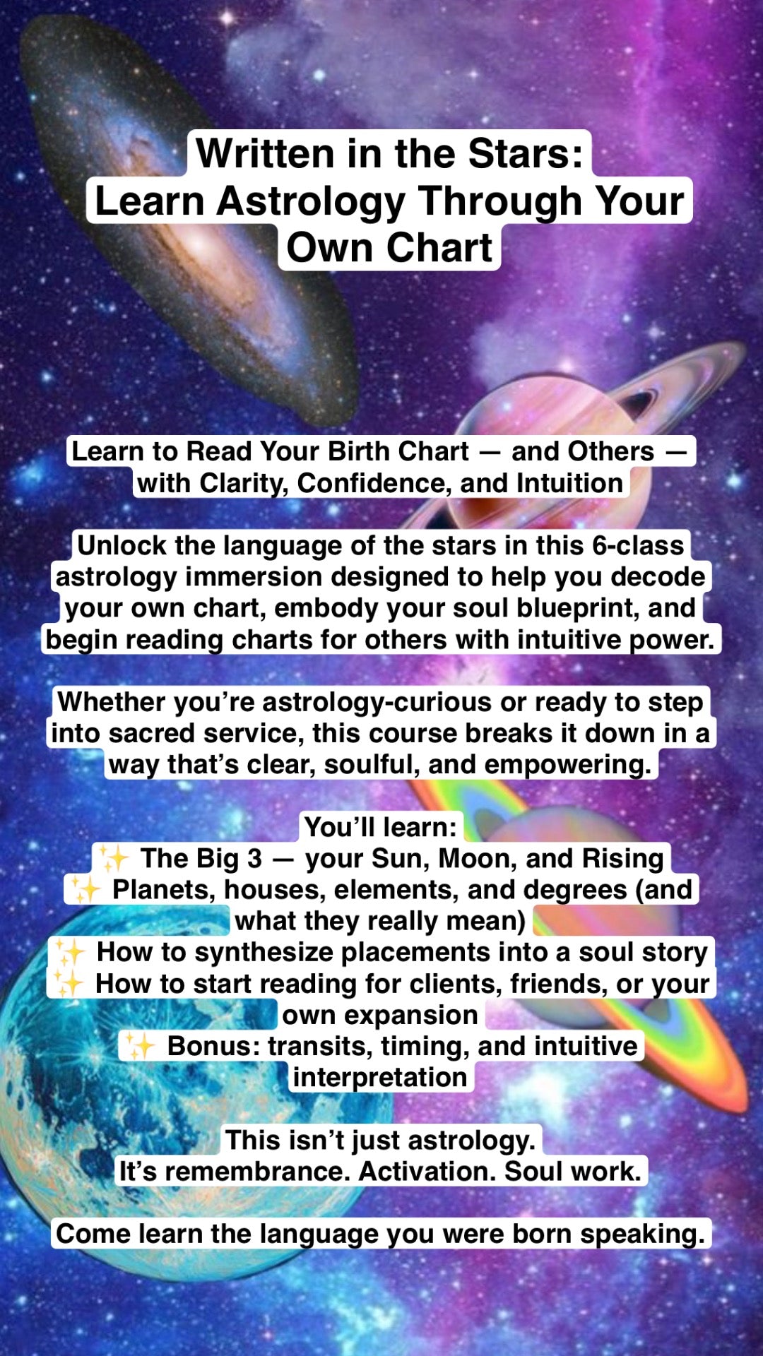 Whether you’re astrology-curious or ready to step into sacred service, this course breaks it down in a way that’s clear, soulful, and empowering.